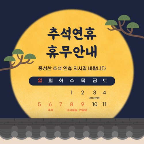 풍요로운 한가위 보내시고, 가정에 늘 건강과 웃음이 가득하시기를 소망합니다.